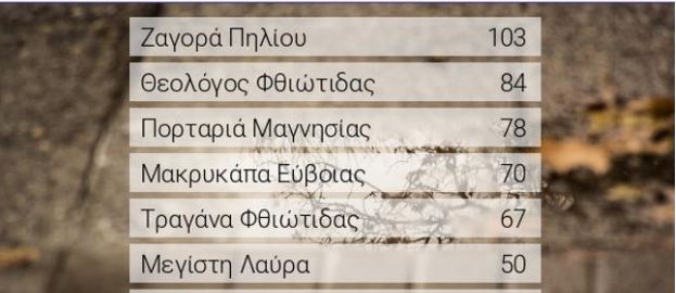- Θεσσαλία (Μαγνησία, Τρίκαλα, Καρδίτσα, ανατολικά τμήματα Ν. Λάρισας)