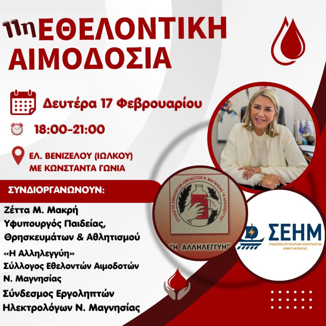 11η εθελοντική αιμοδοσία χάρη στη δική σας κοινωνική ευαισθησία, την πολύτιμη συνεργασία της «Αλληλεγγύης» και του ΣΕΗΜ και την αφοσίωση των συνεργατών του πολιτικού μου γραφείου!Η ισχύς εν τη ενώσει για καλό σκοπό!