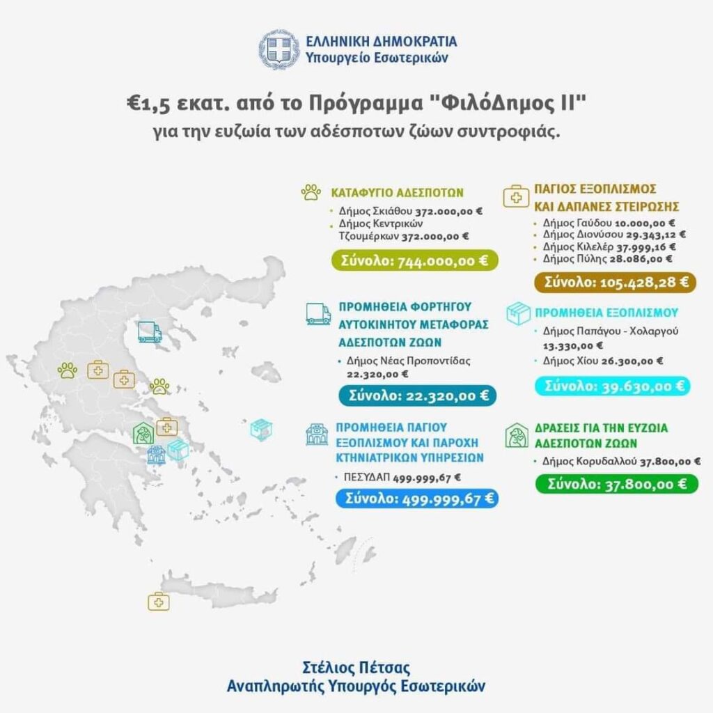 Για την χρηματοδότηση που εγκόθηκε από το Υπουργείο Εσωτερικών του Δήμου Σκιάθου για τα αδέσποτα ενημέρωσε με ανάρτηση του ο Δήμαρχος Σκιάθου Θ.Τζούμας: