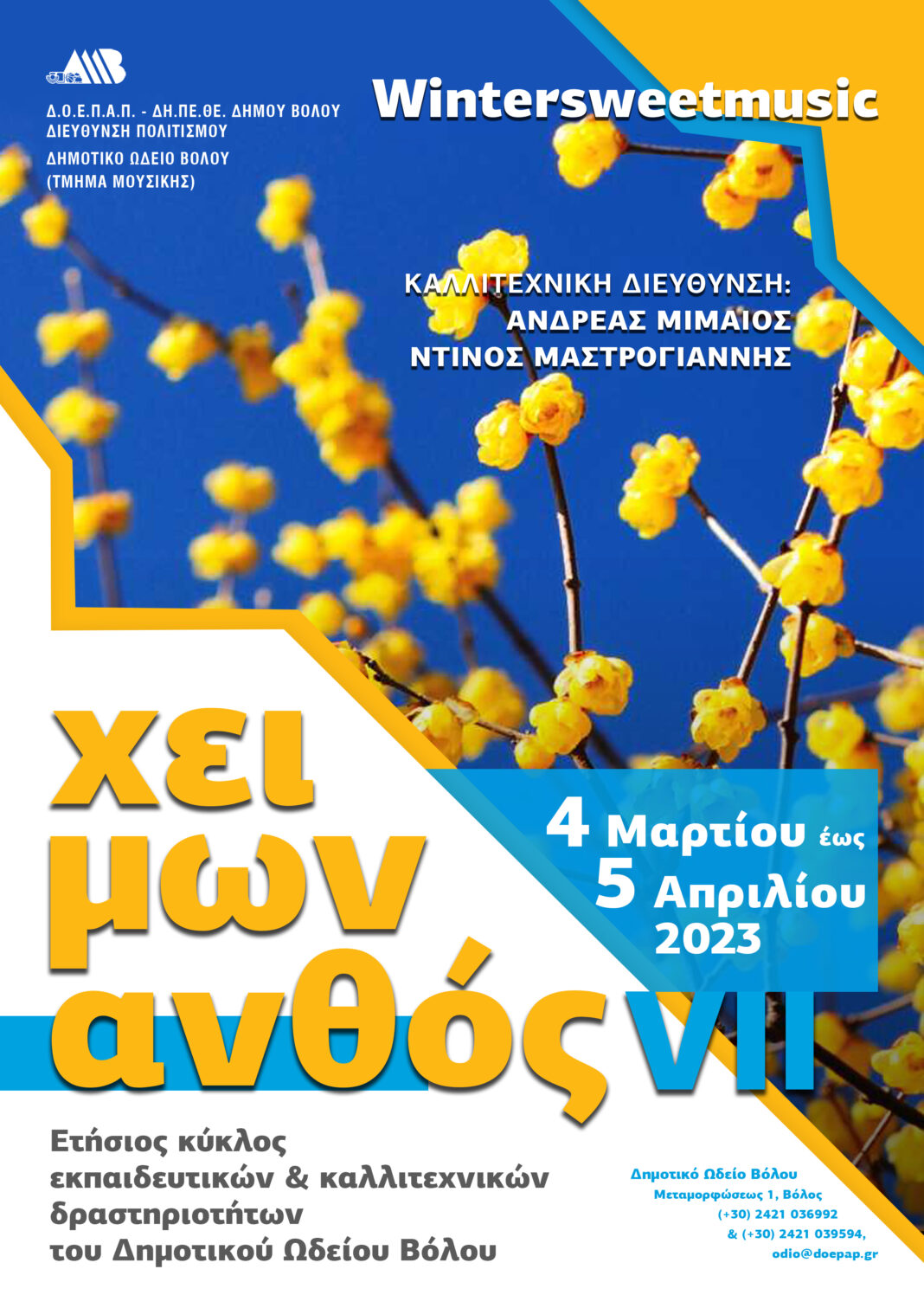 Αγαπητές φίλες και αγαπητοί φίλοι του φεστιβάλ σας παρουσιάζουμε τις συναυλίες και τις εκπαιδευτικές δραστηριότητες της τρίτης εβδομάδας του χειμωνανθού (στο fb «Χειμωνανθός – Κύκλος μουσικών δραστηριοτήτων Δημοτικού Ωδείου Βόλου» και στο ίνσταγκραμ @xeimwnanthos_volou).