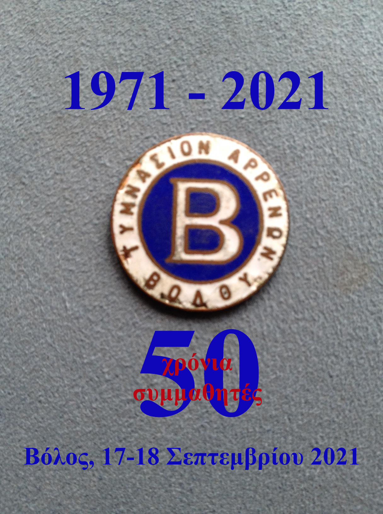Καλόν Μήνα Σεπτέμβριο και δεν ξεχνάμε ότι συμπληρώθηκαν φέτος πενήντα (50) χρόνια από το καλοκαίρι του 1971, όταν αποφοίτησε από το ένδοξο 2ο Γυμνάσιο Αρρένων Βόλου η γενιά των παιδιών του 1953, τα περισσότερα από τα οποία ζουν και δρουν στην πόλη μας κι όσα βρίσκονται μακριά δοξάζουν και τιμούν την γενέτειρά τους.