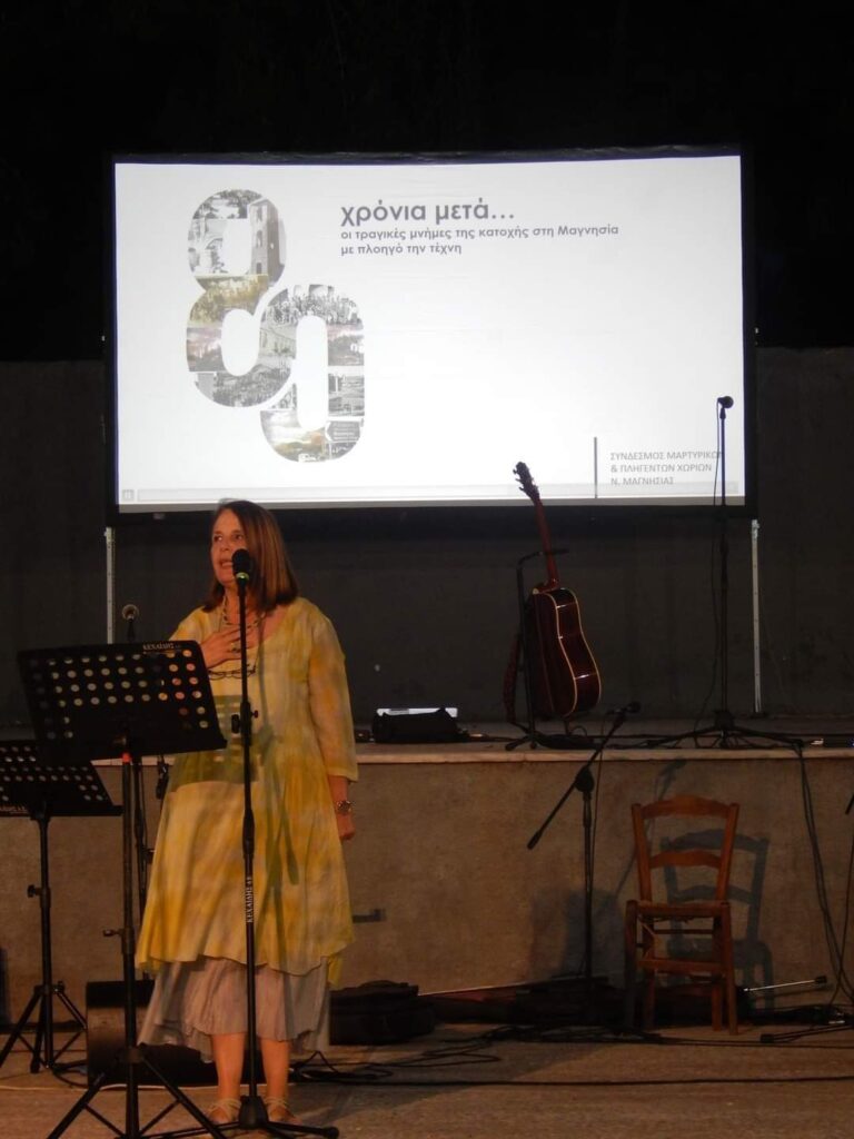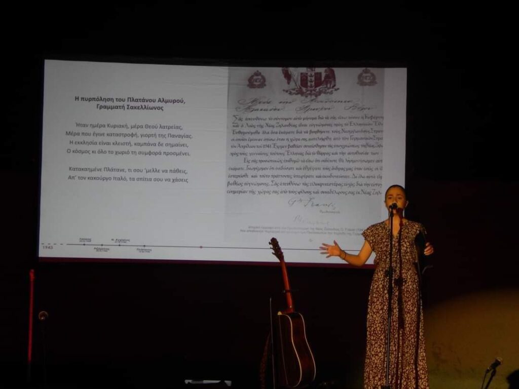 Μια ιδιαίτερη, συγκινητική και γεμάτη συναισθήματα εκδήλωση, πραγματοποιήθηκε την Παρασκευή 16 Ιουνίου στο ανοιχτό δημοτικο θέατρο Νέας Ιωνίας Βόλου, με την υποστήριξη της Περιφέρειας Θεσσαλίας και πολλών ακόμη φορέων της πόλης μας. Η κυρία Αγγελική Θάνου, η οποία δέχτηκε με μεγάλη χαρά την συμμετοχή του συλλόγου μας στην εκδήλωση με τη ζωντανή μαρτυρία του κυρίου Γιώργου Ζαφρατζα ετών 99 πλέον, μαζί με μια πολυπληθή ομάδα και τη συμμετοχή 11 χωριών της Μαγνησίας, μας ταξίδεψαν στα τραγικά χρόνια της Κατοχής. Το τραγούδι, ο χορός, η δραματοποιηση, η αφήγηση και η προβολή, ανέδειξαν τις τραγικές στιγμές του πολέμου. Μια από τις συγκινητικοτερες στιγμές ήταν όταν ένας Εβραίος, 4 χρόνων τότε, ο οποίος κατέφυγε μαζι με την οικογενεια του στον Άγιο Βλασιο για να ξεφύγει από τα γερμανικά στρατευματα, συναντήθηκε με τον απόγονο της οικογένειας που τους φιλοξένησε και τους βοήθησε να σωθούν!