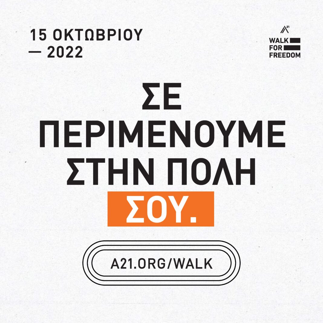 Η Α21, οι εθελοντές του Ateam Βόλου, σε σύμπραξη του Περιφερειακού Τμήματος Συνδέσμου Κοινωνικών Λειτουργών Ελλάδας (ΣΚΛΕ-ΝΠΔΔ) Θεσσαλίας, σας προσκαλούν να συμμετέχετε ενεργά στο 8ο Περπάτημα για την Ελευθερία στην πόλη του Βόλου.