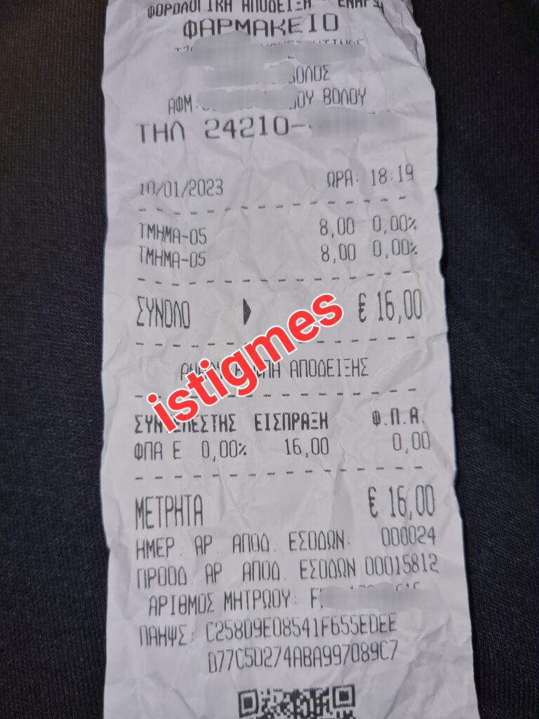 Χθεσινή αγορά ενός τελικά και όχι δύο τεστ όπως αναγράφει η απόδειξη φαρμακείου του Βόλου (μόλις ακούσαμε την τιμή αλλάξαμε την ποσότητα σε ένα αντί για δύο, αλλά είχε χτυπηθεί η απόδειξη στην ταμειακή). Τα 8 ευρώ θεωρούνται φυσιολογική τιμή πώλησης του διπλού τεστ γρίπης και κορωνοϊού για τον Φαρμακευτικό Σύλλογο; Κάθε απάντηση δεκτή… η κοτόσουπα που συνόδευσε το τεστ πάντως, έκανε 5,5 ευρώ από κεντρική ταβέρνα της πόλης