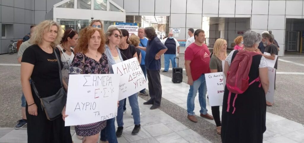 Συγκέντρωση διαμαρτυρίας πραγματοποίησαν σήμερα το πρωί οι ανεμβολίαστοι υγειονομικοί κατά της απόφασης για αναστολή της εργασίας τους από 1 Σεπτέμβρη. Στο πλευρό τους βρέθηκαν και γνωστές φιγούρες του “Κινήματος” των αντιεμβολιαστών της πόλης