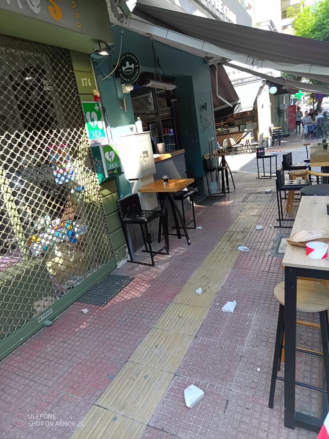 Ευτυχώς τα μάρμαρα που αποκολληθηκαν στις 9:30 το πρωί απο το κτίριο του Επιμελητηρίου έπεσαν στα σκαμπό καφετέριας στη γωνία Κουμουνδούρου με Δημητριάδος όπου δεν καθόταν κανένας πελάτης, ενώ εκείνη την στιγμή δεν υπήρχε κάποιος διερχόμενος πολίτης. Βλέποντας το video του Βασίλη Ηλιοπούλου συνειδητοποιεί ο οιοσδήποτε ότι η δύναμη της πτώση των μαρμάρων θα μπορούσε να προκαλέσει σοβαρό ατύχημα στους πολιτες.