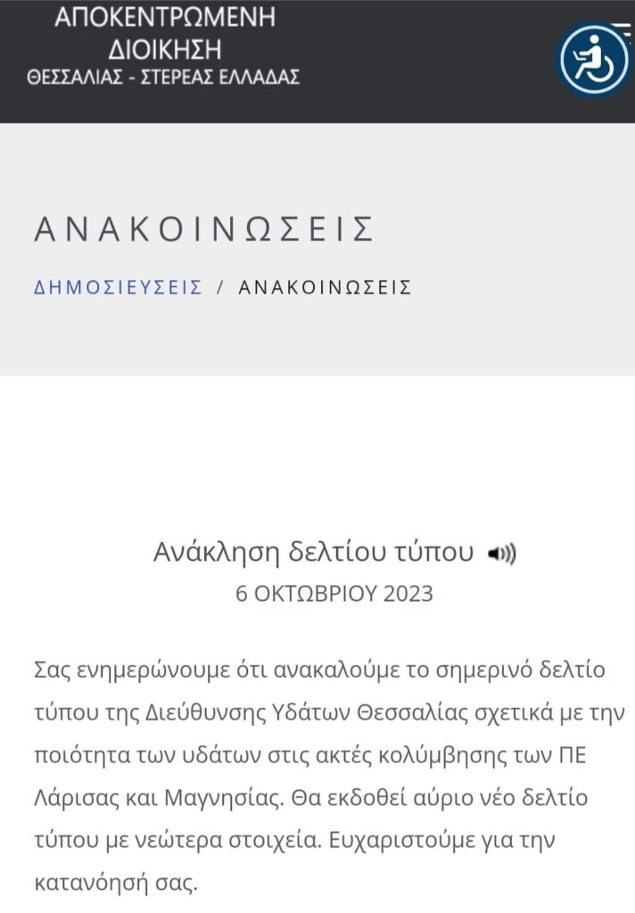 Άποψη / Θέμα Αλαλούμ με το μπάνιο στον Παγασητικό – Ανακάλεσαν την ανακοίνωση καταλληλότητας Άποψη / Θέμα Αλαλούμ με το μπάνιο στον Παγασητικό – Ανακάλεσαν την ανακοίνωση καταλληλότητας 7 Οκτωβρίου 2023 Και η προηγούμενη ανακοίνωση ΠΑΡΟΜΟΙΑ ΑΡΘΡΑΠΕΡΙΣΣΟΤΕΡΑ «Διαγωνισμός» μεταγραφών μεταξύ ΠΑΣΟΚ και Τσίπρα: Τα ονόματα που ακούγονται Φωτιά σε δασική έκταση στο Νεοχώρι Πηλίου – Εχει ζητηθεί η συνδρομή εναέριων μέσων Ο Μπέος στηρίζει Λαζαρίδη – Έκανε video για να βρίσει την αντιπολίτευση … Ο λαϊκισμός του στην υπηρεσία Μητσοτάκη Πρόσφατα Κοινωνικός τουρισμός 2026: Σήμερα η υποβολή αιτήσεων/ κριτήρια/δικαιούχοι – 12 διανυκτερεύσεις στη Θεσσαλία 21 Απριλίου 2026 «Διαγωνισμός» μεταγραφών μεταξύ ΠΑΣΟΚ και Τσίπρα: Τα ονόματα που ακούγονται 21 Απριλίου 2026 72 εκ. ευρώ για την αντιπλημμυρική προστασία της Π.Ε Καρδίτσας 21 Απριλίου 2026 Έσβησαν τα συνθήματα της Χρυσής Αυγής στο σχολείο του οι μαθητές του 2ου ΕΠΑΛ 21 Απριλίου 2026 ΔΙΟΙΚΗΤΙΚΗ ΠΑΡΑΔΟΣΗ – ΠΑΡΑΛΑΒΗ ΑΠΟ ΤΗΝ ΠΕ ΜΑΓΝΗΣΙΑΣ &ΣΠΟΡΑΔΩΝ ,ΤΟΥ ΕΡΓΟΥ ΧΩΡΟΥ ΜΝΗΜΗΣ ΔΗΜΗΤΡΗ ΚΑΣΛΑ 21 Απριλίου 2026 Φωτιά σε δασική έκταση στο Νεοχώρι Πηλίου – Εχει ζητηθεί η συνδρομή εναέριων μέσων 20 Απριλίου 2026 Ο Μπέος στηρίζει Λαζαρίδη – Έκανε video για να βρίσει την αντιπολίτευση … Ο λαϊκισμός... 20 Απριλίου 2026 Εκδήλωση του ΚΚΕ με ομιλητές τους Α.Ριζόπουλο – Κ.Γαργάλα με το βλέμμα στις δημοτικές εκλογές 20 Απριλίου 2026 Η μεγάλη δοκιμασία της Τετάρτης – Πόσοι «γαλάζιοι» βουλευτές δεν θα ψηφίσουν υπέρ της ασυλίας; 20 Απριλίου 2026 Στο επίκεντρο η στήριξη του περιφερειακού Τύπου 20 Απριλίου 2026