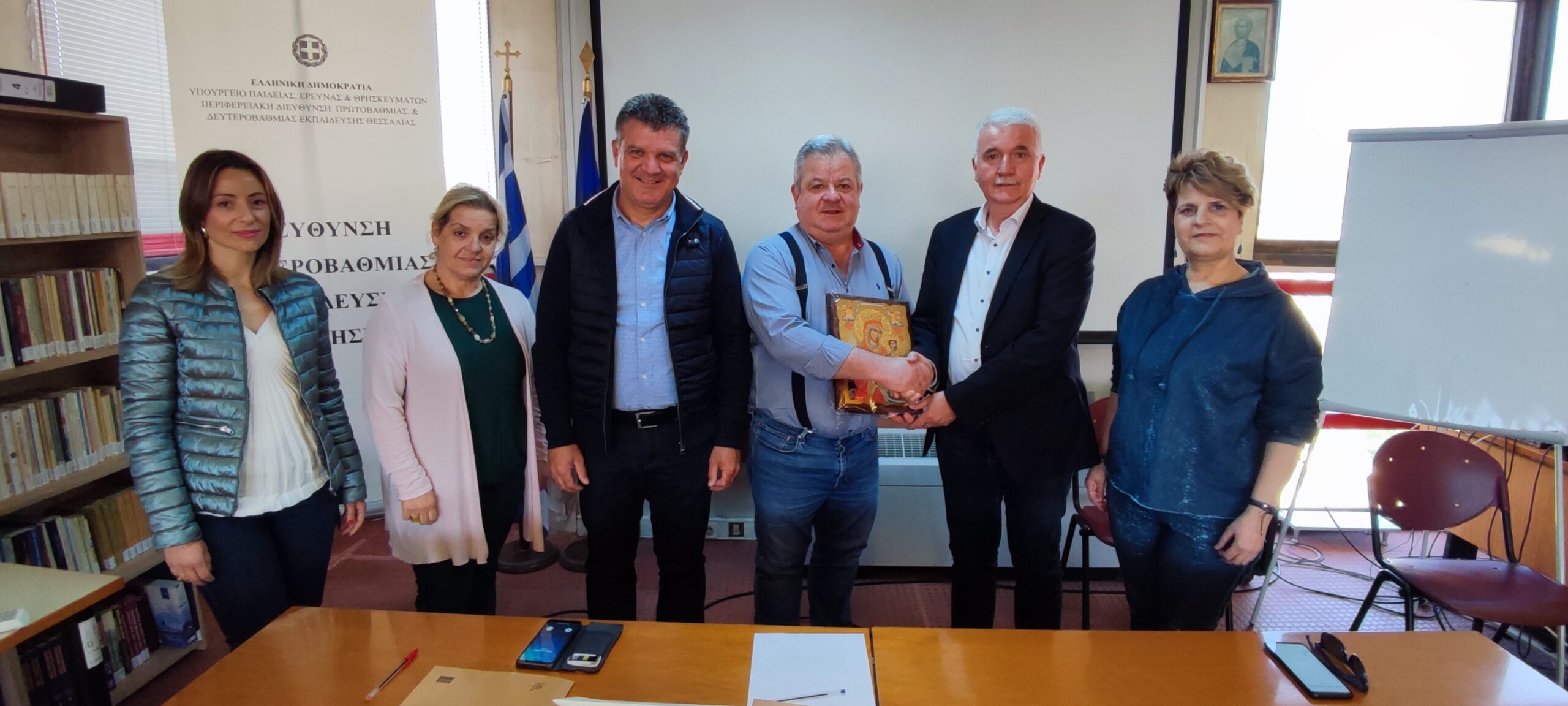 Με το πέρας της συνάντησης ο Δήμαρχος Μετεώρων Θοδωρής Αλέκος χάρισε μια εικόνα της Παναγίας «Ρόδον το Αμάραντον» Ι.Μ. Αγίου Μετεώρου καθώς και τα βιβλία: «Το Καστράκι των βράχων και των θρύλων» του Αθανασίου Δ. Τσαγκαρασούλη (2019) και «Η Καλαμπάκα μέσα από την ιστορία της», Εισηγήσεις-Πρακτικά Β’ Ιστορικού Συνεδρίου Καλαμπάκας (2005) στον Διευθυντή Δευτεροβάθμιας Εκπαίδευσης Μαγνησίας Δρ Σωκράτη Σαβελίδη σηματοδοτώντας την συνέχιση και ανάπτυξη νέων πλαισίων συνεργασίας στην υπηρεσία της εκπαίδευσης και του πολιτισμού σε ευρωπαϊκό επίπεδο.