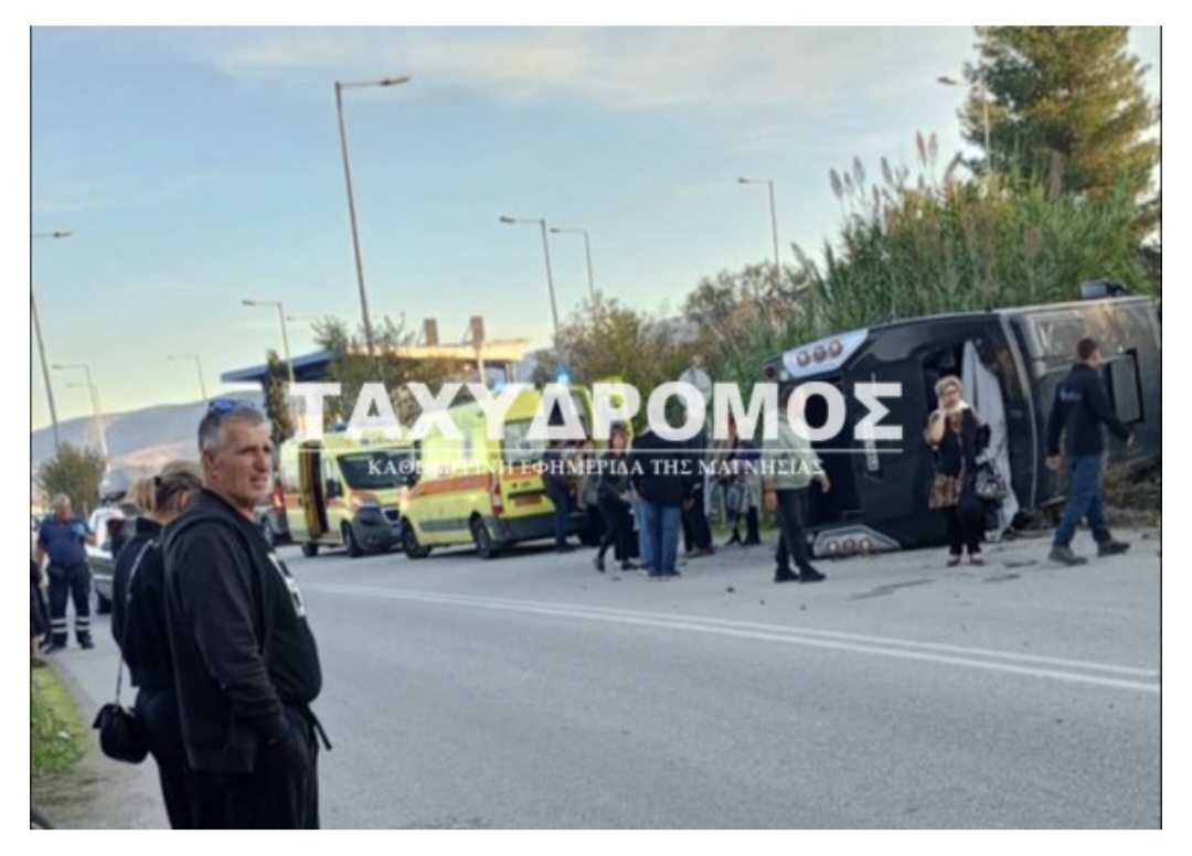 Κάτω από άγνωστες συνθήκες το λεωφορείο εξετράπη από την πορεία του και ανατράπηκε.