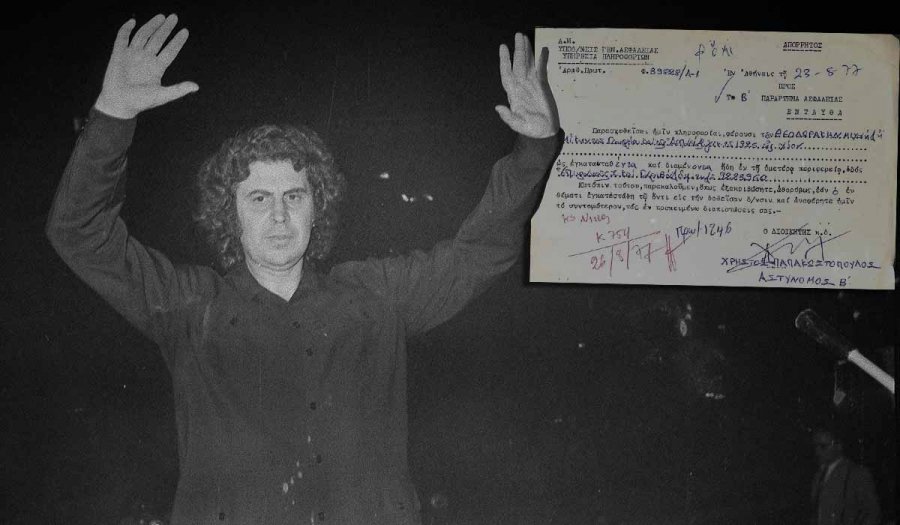 Όπως προκύπτει από έγγραφο στο Φάκελό του στην Ασφάλεια, που παρουσιάζει σήμερα το iEidiseis, ο Μίκης Θεοδωράκης παρακολουθούνταν από τις αστυνομικές αρχές και μετά τη δικτατορία, επί μεταπολίτευσης, το 1977, επί κυβέρνησης Κωνσταντίνου Καραμανλή!