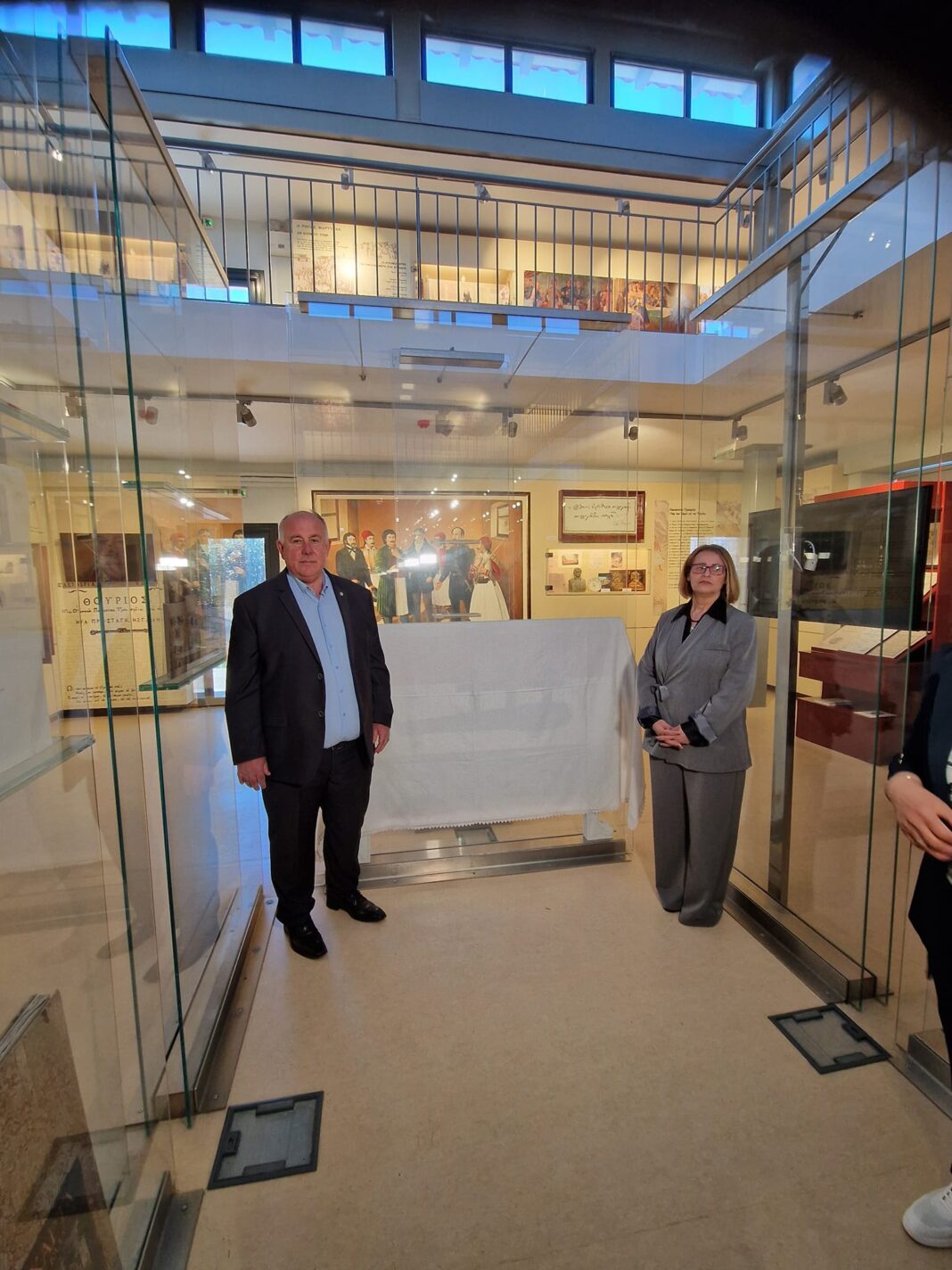 Σήμερα Κυριακή 24 Μαρτίου στο Εκθεσιακό Κέντρο Πολιτισμού “Ρήγας Βελεστινλής” στην Υπέρεια Κρήνη (Κεφαλόβρυσο) Βελεστίνου πραγματοποιήθηκαν τα αποκαλυπτήρια του εικαστικού ψηφιδωτού “Εγερτήριο σάλπισμα” που φιλοτεχνήθηκε με την προτροπή του Συλλόγου Γυναικών “Υπέρεια Κρήνη” Βελεστίνου και τη συμμετοχή όλων των πολιτιστικών φορέων της πόλης, και αναπαριστά τη σημαία του Ρήγα Βελεστινλή.