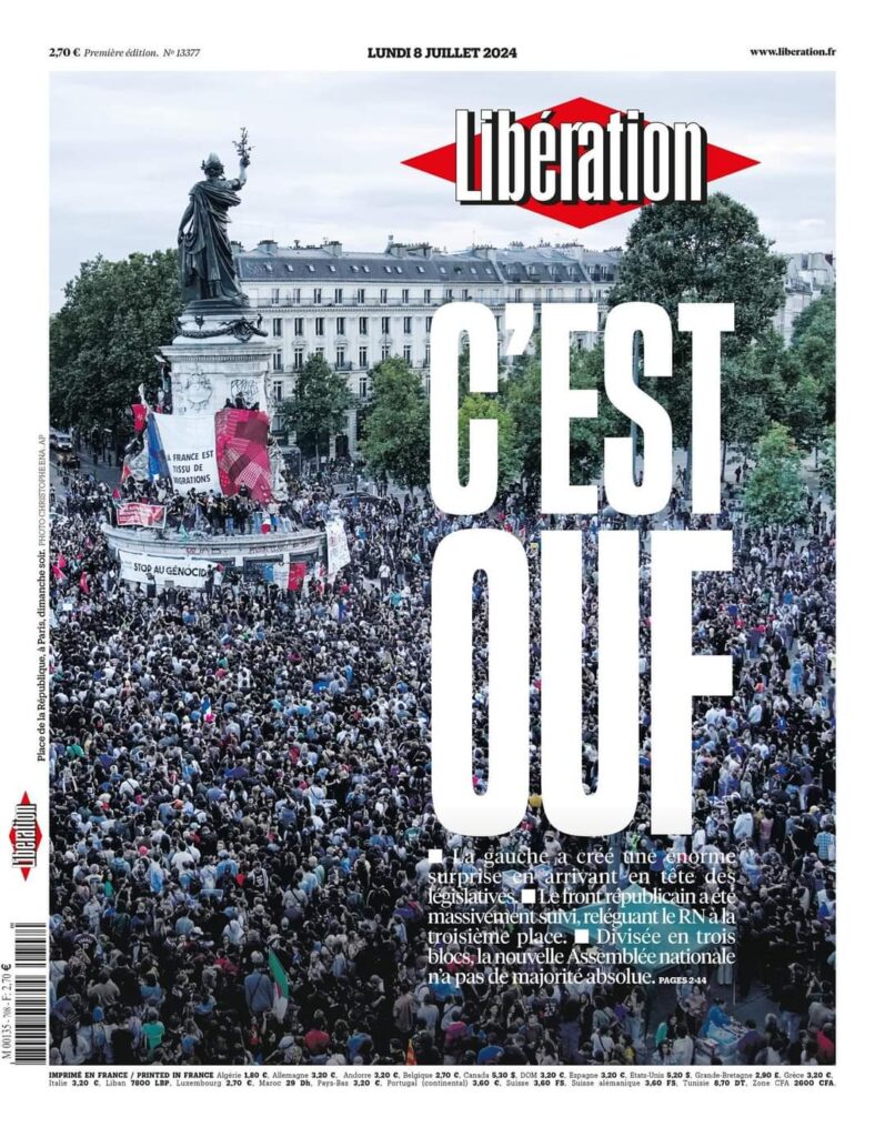 H απόλυτη ανατροπή συνέβη στον δεύτερο γύρο των βουλευτικών εκλογών στη Γαλλία. Σύμφωνα με τα πρώτα exit poll, το Νέο Λαϊκό Μέτωπο (NFP) κερδίζει τον μεγαλύτερο αριθμό εδρών νικώντας τον Εθνικό Συναγερμό.