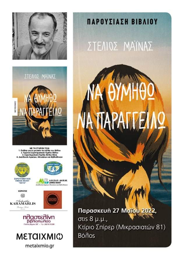 ..συντροφιά μας ο ηθοποιός και συγγραφέας Στέλιος Μάινας με τη νέα του κυκλοφορία από τις εκδ. Μεταίχμιο “Να θυμηθώ να παραγγείλω”, η ηθοποιός Κάτια Σπερελάκη και ο Θωμάς Κοροβίνης. Συντονίζει η δημοσιογράφος Ροσσάνα Πώποτα..
