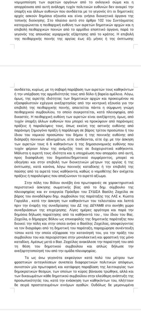 Ααιστορικη αρνητικά θα μείνει για τα μέλη της ομάδας πλειοψηφίας του Δήμου Βόλου η άρνησή τους να καταδικάουνι το πρωτοφανές περιστατικό βίας, της επίθεσης με γροθιά και κουκούλα του Βασίλη Ζαχείλα, σε βάρος του δημοτικού συμβούλου της ΛΑΣ κ. Κώστα Γαργάλα.