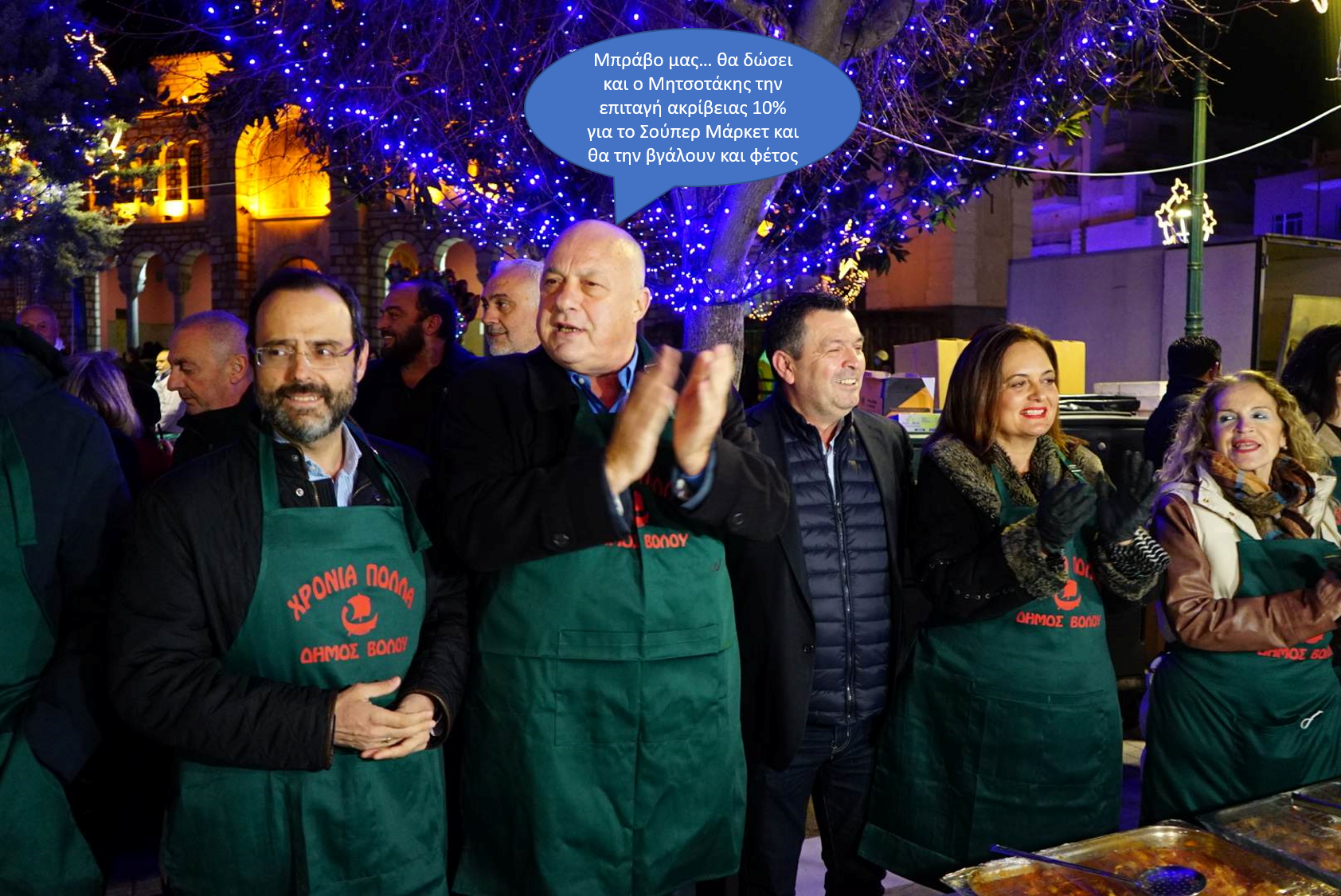 Την ώρα που τα στοιχεία της Περιφέρειας Θεσσαλίας καταγράφουν ως πρωταθλήτρια πόλη της φτώχιας τον Βόλο με τις οικογένειες από 9.655 δημότες Βόλου να λαμβάνουν επίδομα επιβίωσης, ο Δήμαρχος Βόλου για μία ακόμη χρονιά πλαισιωμένος από βουλευτές της ΝΔ, μοίρασε με την ποδιά “μάγειρα” δωρεάν φαγητό αδιακρίτως στους πολίτες που βρέθηκαν στην Ερμού στον Άγιο Νικόλαο ως το “γεύμα αγάπης” των ημερών. Το Κοινωνικό Παντοπωλείο του Δήμου να σημειώσουμε παρά το νέο επικοινωνιακό σώου και φέτος του κ. Μπέου, δεν εξυπηρετεί περισσότερες από 450 οικογένειες τον μήνα, ενώ ο Δήμος αντί να δίνει λεφτά για την διεύρυνση του αριθμού των ωφελούμενων από αυτό, ή για να στηρίξει οικονομικά τα Σπίτια Γαλήνης των Ενοριών που σιτίζουν 3000 πολίτες, δίνει 170.000 για την διοργάνωση εκδηλώσεων το καλοκαίρι του 2023 στις εκκλησίες της πόλης και φυσικά για λαμπάκια, λουλούδια και δημόσιες σχέσεις, εκδηλώσεις, κτλ. Άρτος και διπλοπενιές απόψε στην πλατεία του Αγίου Νικολάου και καθημερινή διαχείριση των προσφορών των σούπερ μάρκετ προς τους φτωχούς της πόλης από τα στελέχη της Δημοτικής Αρχής, που τελικά απλώς παρακολουθεί τη πόλη του Βόλου να είναι η πόλη του φωτός με τον Ρέμο και τον Πάριο και τις χορηγίες της ΑΓΕΤ και της Eurobank … και δυστυχώς παράλληλα η πρωταθλήτρια της φτώχιας με ένα ανεπαρκέστατο κοινωνικό δημοτικό δίχτυ προστασίας. Μπράβο κ. Μπέο…