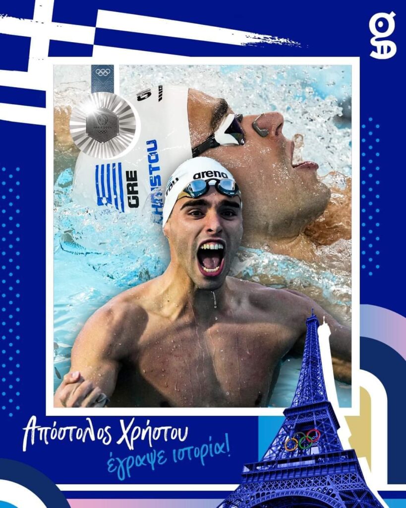 Ο Απόστολος Χρήστου κατάφερε να πετύχει την μεγαλύτερη διάκριση στην ιστορία της ελληνικής κολύμβησης κατακτώντας το ασημένιο μετάλλιο στα 200 μέτρα ύπτιο με χρόνο 1:54.82!