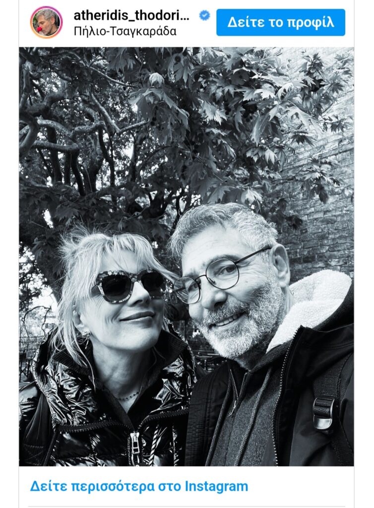 Μάλιστα πόζαραν αγκαλιασμένοι και φανερά ευδιάθετοι με τον Θοδωρή Αθερίδη να μοιράζεται το τρυφερό τους στιγμιότυπο στον προσωπικό του λογαριασμό στο Ιnstagram