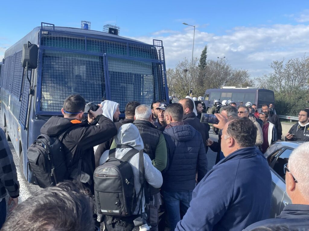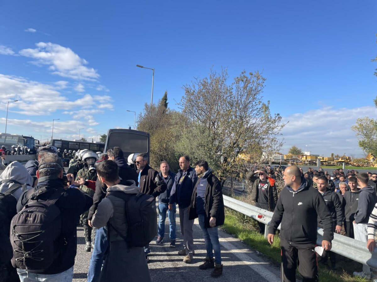 Ήδη στο σημείο η ένταση είναι τεράστια και ο δρόμος έχει μετατραπεί σε πεδίο μάχης με τους αγρότες πλέον να έχουν προσπεράσει τις κλούβες της αστυνομίας και πεζή να πορεύονται προς την Εθνική Οδό.
