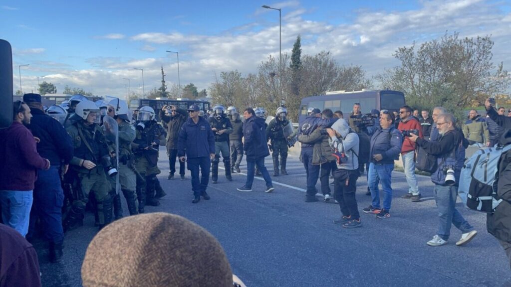 Νέος κύκλος επεισοδίων στο μπλόκο της Νίκαιας όταν αστυνομικές δυνάμεις προχώρησαν στην προσαγωγή του αγροτοσυνδικαλιστή, Χρήστου Σιδερόπουλου.