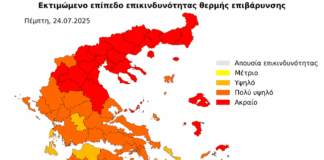 Meteo: Καύσωνας με 44άρια, αυξημένη επικινδυνότητα λόγω θερμικής επιβάρυνσης -Οι περιοχές στο «κόκκινο»