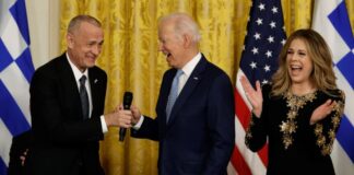 Η σύζυγος του Τομ Χανκς τραγούδησε Κόκοτα στον Μπάιντεν στη γιορτή της 25ης Μαρτίου (video)