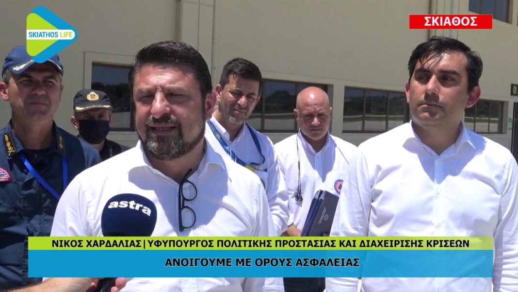 Αμέσως μετά, σε δηλώσεις του ο κ. Χαρδαλιάς επισήμανε ότι το αεροδρόμιο της Σκιάθου είναι έτοιμο να υποδεχθεί από μεθαύριο Τετάρτη ταξιδιώτες από το εξωτερικό, με αδιαπραγμάτευτους όρους προστασίας της δημόσιας υγείας.Σημειώνεται ότι κάθε εισερχόμενος επισκέπτης στη χώρα, θα υπόκειται σε συγκεκριμένες διαδικασίες, στη συμπλήρωση ενός εντύπου και ανάλογα με τις πληροφορίες που έχει δώσει, θα αξιολογείται από ομάδα επιστημόνων. Επίσης θα τεστάρονται δειγματοληπτικά όλοι εισερχόμενοι στη χώρα.