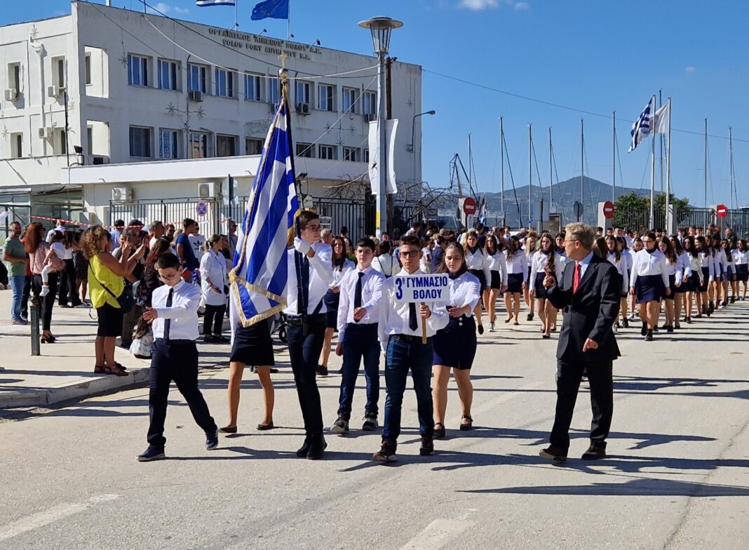 Χιλιάδες πολίτες παρακολούθησαν σήμερα, την παρέλαση για να τιμηθεί η εθνική επέτειος της 28ης Οκτωβρίου, στην παραλία του Βόλου, με σύμμαχο τον εξαιρετικό καιρό.
