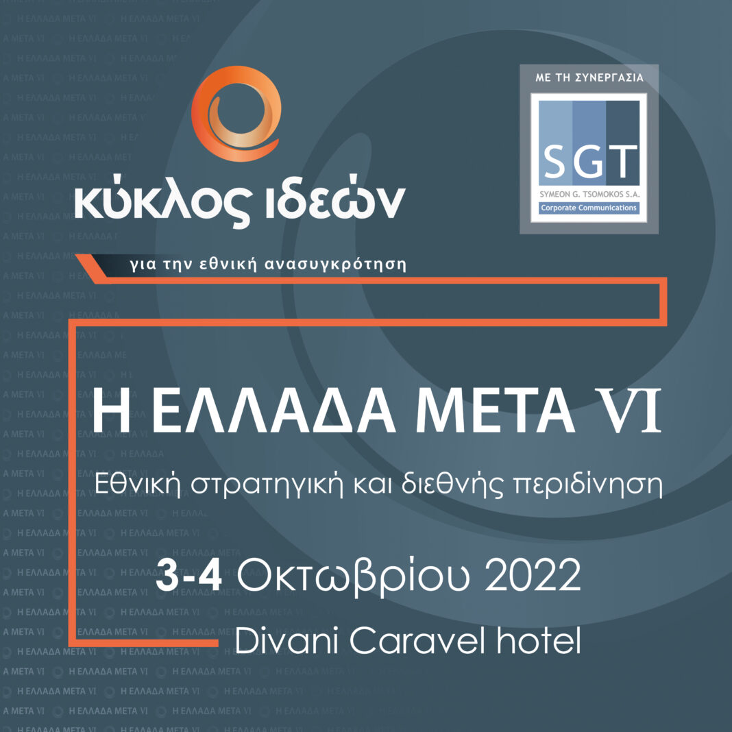 O ΚΥΚΛΟΣ ΙΔΕΩΝ σε συνεργασία με τη TSOMOKOS, διοργανώνουν για έκτη συνεχή χρονιά το ετήσιο συνέδριο Η ΕΛΛΑΔΑ ΜΕΤΑ, με κεντρικό θέμα: Εθνική στρατηγική και διεθνής περιδίνηση