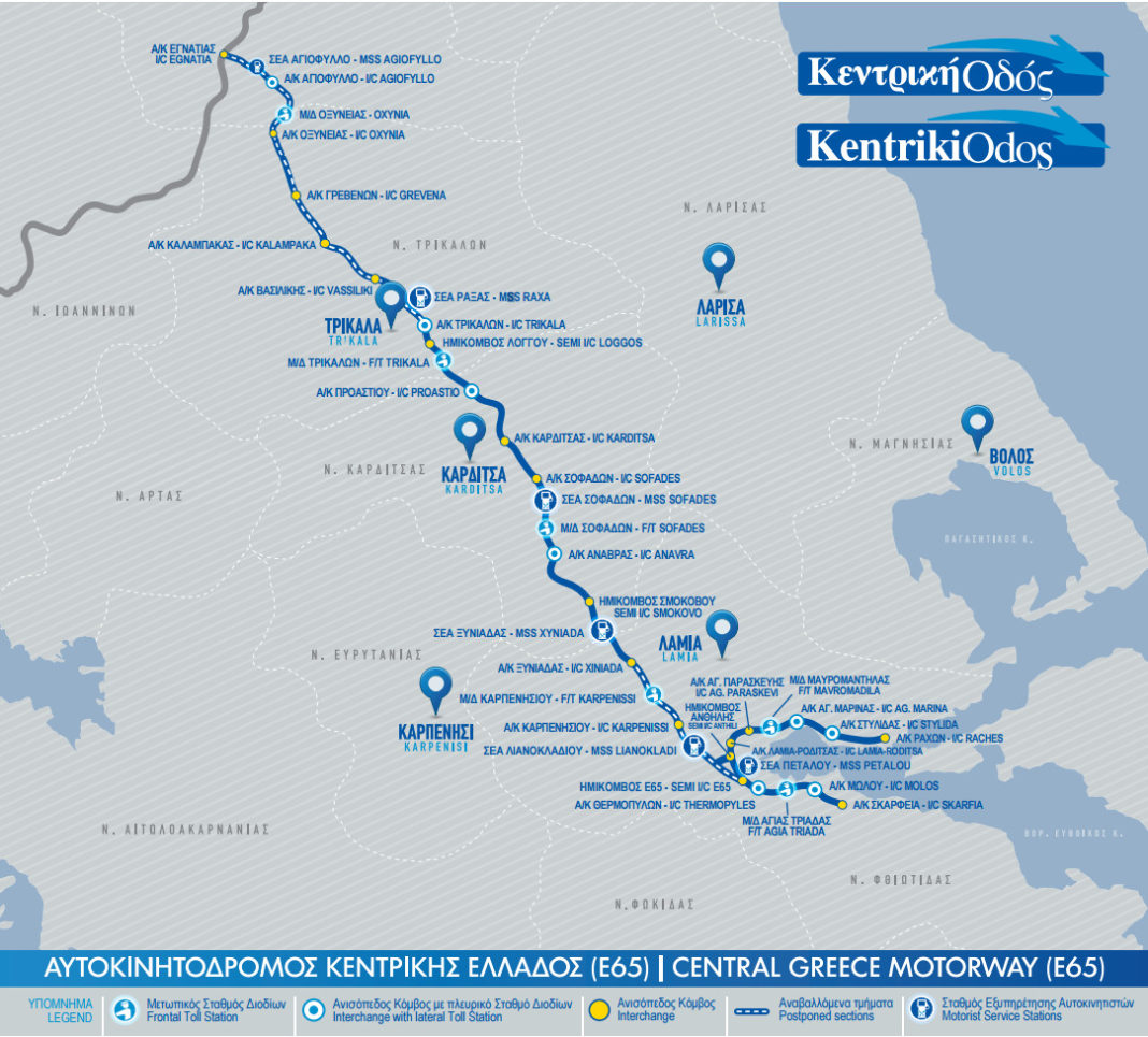 Η Οδός Κεντρικής Ελλάδας (Κεντρική Οδός), ανακοινώνει πως την Παρασκευή 22 Δεκεμβρίου, παραδίδεται σε κυκλοφορία το τμήμα του Αυτοκινητοδρόμου Κεντρικής Ελλάδας – Ε65 από την Ξυνιάδα (31,8 χλμ.) έως και τα Τρίκαλα (111,4 χλμ.).