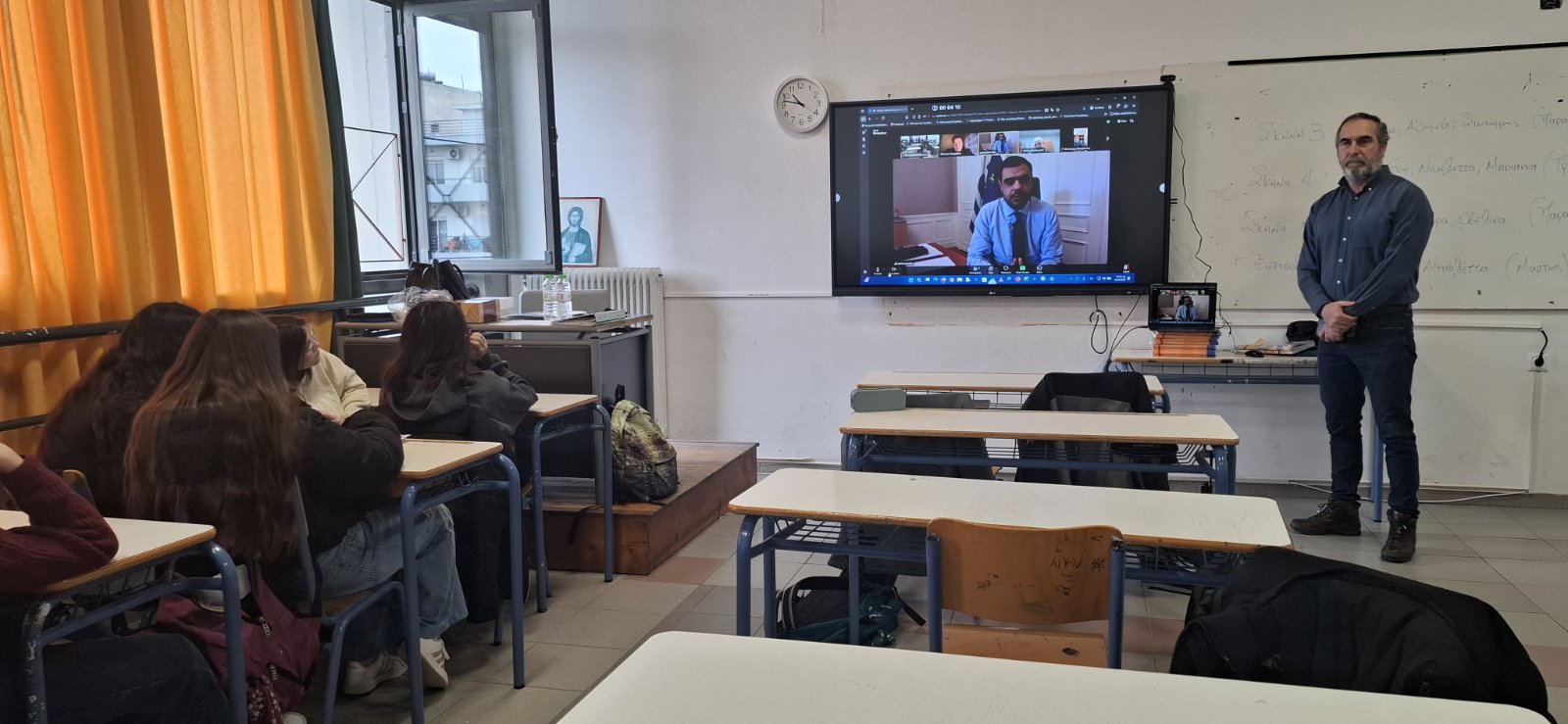 Στη διαδικτυακή δράση συμμετείχε και ο Πρόεδρος της Ένωσης Συντακτών Θεσσαλίας, Στερεάς Ελλάδας και Εύβοιας, δημοσιογράφος Δημήτρης Χορταργιάς, ο οποίος συνδέθηκε ζωντανά από τη σχολική τάξη του 7ου Γυμνασίου Βόλου, μαζί με τους μαθητές και τις εκπαιδευτικούς που υλοποιούν το πρόγραμμα, κ.κ. Αργυρώ Μέκα, Θωμαΐς Ντέμκα και Ελένη Διαμαντή. Το παρόν στην αίθουσα έδωσε και ο διευθυντής του σχολείου, Περικλής Φασουράκης.