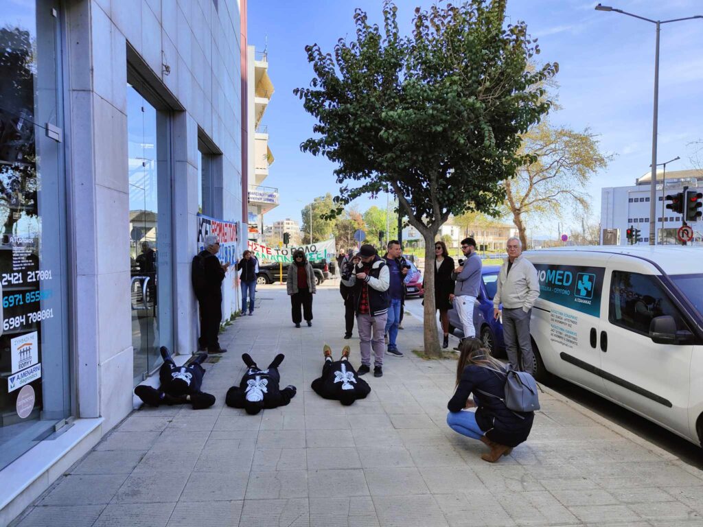 Οι διαμαρτυρόμενοι πολίτες έφτασαν στην είσοδο του Τεχνικού Επιμελητηρίου κρατώντας πανό με συνθήματα κατά της τσιμεντοβιομηχανίας, στρέφοντας τα βέλη εναντίον της και θεωρώντας τη ως βασικό υπαίτιο της αέριας ρύπανσης που ταλανίζει την πόλη.