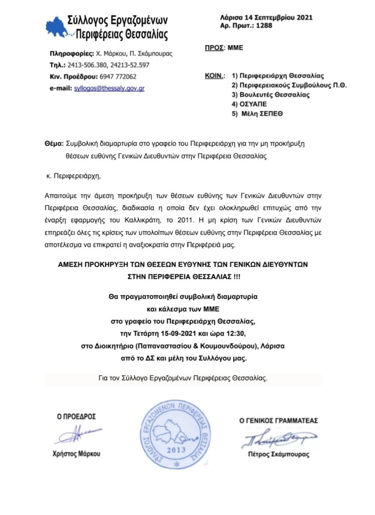 Διάφορα Διαμαρτυρία στο Γραφείο του Περιφερειάρχη από τον Σύλλογο Εργαζομένων Διάφορα Διαμαρτυρία στο Γραφείο του Περιφερειάρχη από τον Σύλλογο Εργαζομένων 14 Σεπτεμβρίου 2021 ΠΑΡΟΜΟΙΑ ΑΡΘΡΑΠΕΡΙΣΣΟΤΕΡΑ Στην Άφυσο για μπάνιο ο Γιώργος Λιάγκας(video) Στις 29 Απριλίου οι εξετάσεις για άδεια οδήγησης ταξί στην Μαγνησία Δήλωση του Β. Μεταξά για το χθεσινό περιστατικό με το ασθενοφόρο στην Εθνική Οδό Πρόσφατα Συναγερμός στη Θεσσαλία για την κουρά ζώων – Υποχρεωτικά μέτρα βιοασφάλειας για τους κτηνοτρόφους 24 Απριλίου 2026 Παπαπέτρος: Απολύτως αναγκαία η λειτουργία των κοινωνικών δομών- Ο Δήμος να διασφαλίσει τις θέσεις των... 24 Απριλίου 2026 «Τέτοια κατάντια ο άντρας ο πολλά βαρύς»: Ο Μπέος ζήτησε αναβολή στη δική του έφεση... 24 Απριλίου 2026 Μαρινάκης: Κανονικά στα ψηφοδέλτια οι βουλευτές για τους οποίους αποφασίστηκε η άρση ασυλίας 23 Απριλίου 2026 Τσίπρας από Δελφούς: Επιστρέφω για να υπάρξει κανονικότητα και σταθερότητα στον τόπο 23 Απριλίου 2026 Κοβέσι: Έγκλημα ο ΟΠΕΚΕΠΕ – Αντιπερισπασμός οι επιθέσεις στην ευρωπαϊκή εισαγγελία 23 Απριλίου 2026 Ζ. Μακρή: «250.000€ από την Περιφέρεια σε 5 δήμους της Μαγνησίας» 23 Απριλίου 2026 Αίρεται η ασυλία και των 13 βουλευτών της ΝΔ -Τα αποτελέσματα τί υποστήριξαν 22 Απριλίου 2026 Νέα μέτρα: Η εξειδίκευση 22 Απριλίου 2026 Τα 8 νέα μέτρα στήριξης που ανακοίνωσε ο Κ. Μητσοτάκης: Ενισχύσεις για ενοίκια, καύσιμα, οικογένειες... 22 Απριλίου 2026