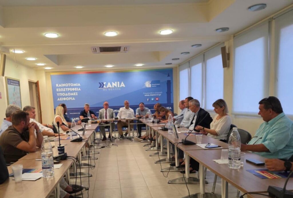 Σύσκεψη εργασίας μεταξύ των επικεφαλής των θεσμικών φορέων της Κρήτης, της Θεσσαλίας και εκπροσώπων της Διοίκησης της αεροπορικής εταιρίας “Sky Express” πραγματοποιήθηκε στο Επιμελητήριο Χανίων την Δευτέρα 28 Ιουλίου μετά από πρωτοβουλία του Περιφερειακού Συμβουλίου Επιμελητηρίων Θεσσαλίας.