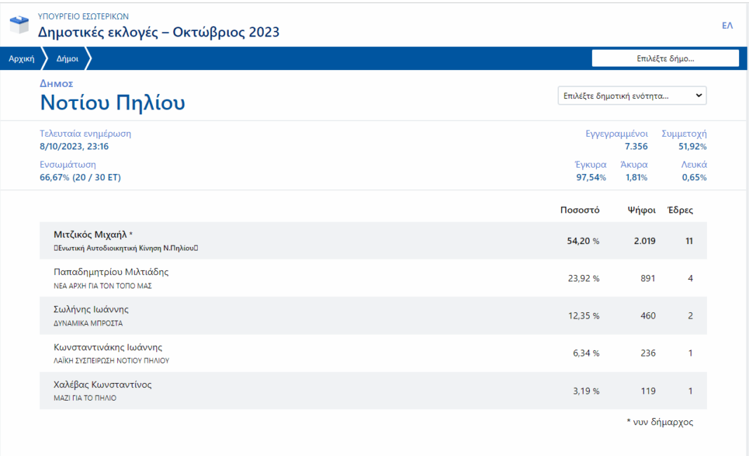 Άποψη / Θέμα Δήμος Νοτίου Πηλίου- Επίσημα Αποτελέσματα (23:16): Από το ΥΠ.ΕΣ. ενσωμάτωση στο 66,67%-... Άποψη / Θέμα Δήμος Νοτίου Πηλίου- Επίσημα Αποτελέσματα (23:16): Από το ΥΠ.ΕΣ. ενσωμάτωση στο 66,67%- Μ. Μιτζικός στο 54,20% 8 Οκτωβρίου 2023 ΠΑΡΟΜΟΙΑ ΑΡΘΡΑΠΕΡΙΣΣΟΤΕΡΑ Παμμαγνησιακό Συλλαλητήριο για το LNG στις 23 Νοεμβρίου Βόλος: 61χρονη έγινε σκιά σε γειτόνισσά της και την βομβάρδιζε με ερωτικά μηνύματα – Τι είπε στο δικαστήριο Video με την ηχογράφηση του προλόγου του βιβλίου του απο τον Α. Τσίπρα Πρόσφατα Παμμαγνησιακό Συλλαλητήριο για το LNG στις 23 Νοεμβρίου 6 Νοεμβρίου 2025 Δρομολογείται δεύτερος κύκλος του “my Business Support” για επιχειρήσεις – δικαιούχους που επλήγησαν από τον... 6 Νοεμβρίου 2025 Βόλος: 61χρονη έγινε σκιά σε γειτόνισσά της και την βομβάρδιζε με ερωτικά μηνύματα – Τι... 6 Νοεμβρίου 2025 Video με την ηχογράφηση του προλόγου του βιβλίου του απο τον Α. Τσίπρα 6 Νοεμβρίου 2025 ΟΣΕ: Διαψεύδει ότι μπήκε τρένο σε λάθος γραμμή στη Λάρισα 6 Νοεμβρίου 2025 Παρουσίαση του βιβλίου της Μυρσίνης Ζορμπά και συζήτηση με θέμα «Πολιτισμός και Πολιτική» 6 Νοεμβρίου 2025 Τα πλημμυρικά φαινόμενα στη Σκιάθο δεν οφείλονται σε ελλείψεις έργων ή καθαρισμών, αλλά στην εξαιρετικά... 6 Νοεμβρίου 2025 Σύσκεψη “κορυφής” για τα ενεργειακά- Ο Βόλος υποψήφιος για τερματικό σταθμό LNG! 6 Νοεμβρίου 2025 “Κάτι έγινε με το κλειδί”: Τρένο προς Λάρισα μπήκε σε λάθος γραμμή και κινήθηκε για... 6 Νοεμβρίου 2025 Η Ευρωπαϊκή Ένωση προσμετρά LNG και στον Παγασητικό για να ανταπεξέλθει η Ελλάδα στις ανάγκες... 6 Νοεμβρίου 2025