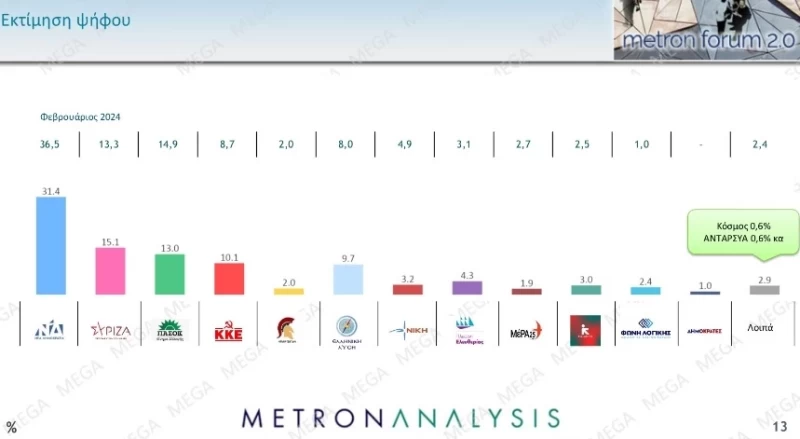 -ΠΑΣΟΚ 13% (από 14,9%)