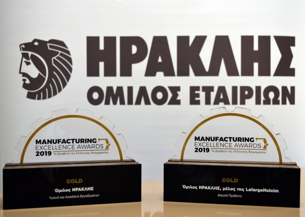Για τα καινοτόμα προϊόντα και τη συνολική συνεισφορά του στον κατασκευαστικό κλάδο, καθώς και τις υψηλές επιδόσεις του σε θέματα Υγείας & Ασφάλειας στο εργασιακό περιβάλλον διακρίθηκε ο Όμιλος ΗΡΑΚΛΗΣ, μέλος του Ομίλου LafargeHolcim, μέσα από τη διπλή βράβευσή του στο θεσμό των Manufacturing Excellence Awards 2019. Τιμήθηκε με το χρυσό βραβείο στην κατηγορία «Αριστεία ανά βιομηχανικό κλάδο – Δομικά προϊόντα» καθώς και με το χρυσό βραβείο στην κατηγορία «Εργασία, ασφάλεια και περιβάλλον – Υγιεινή και ασφάλεια εργαζομένων».