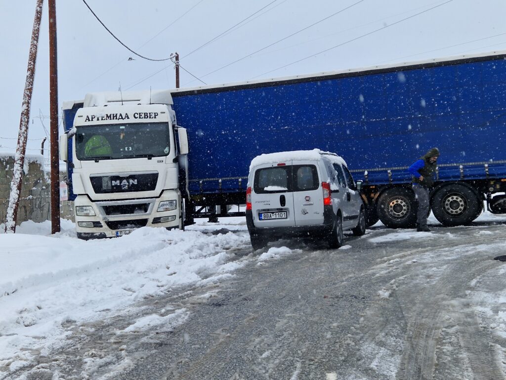 Βούλγαρος οδηγός που πήγαινε να ξεφορτώσει δεν υπολόγισε σωστά και εχασε από τον πάγο τον έλεγχο της νταλίκας