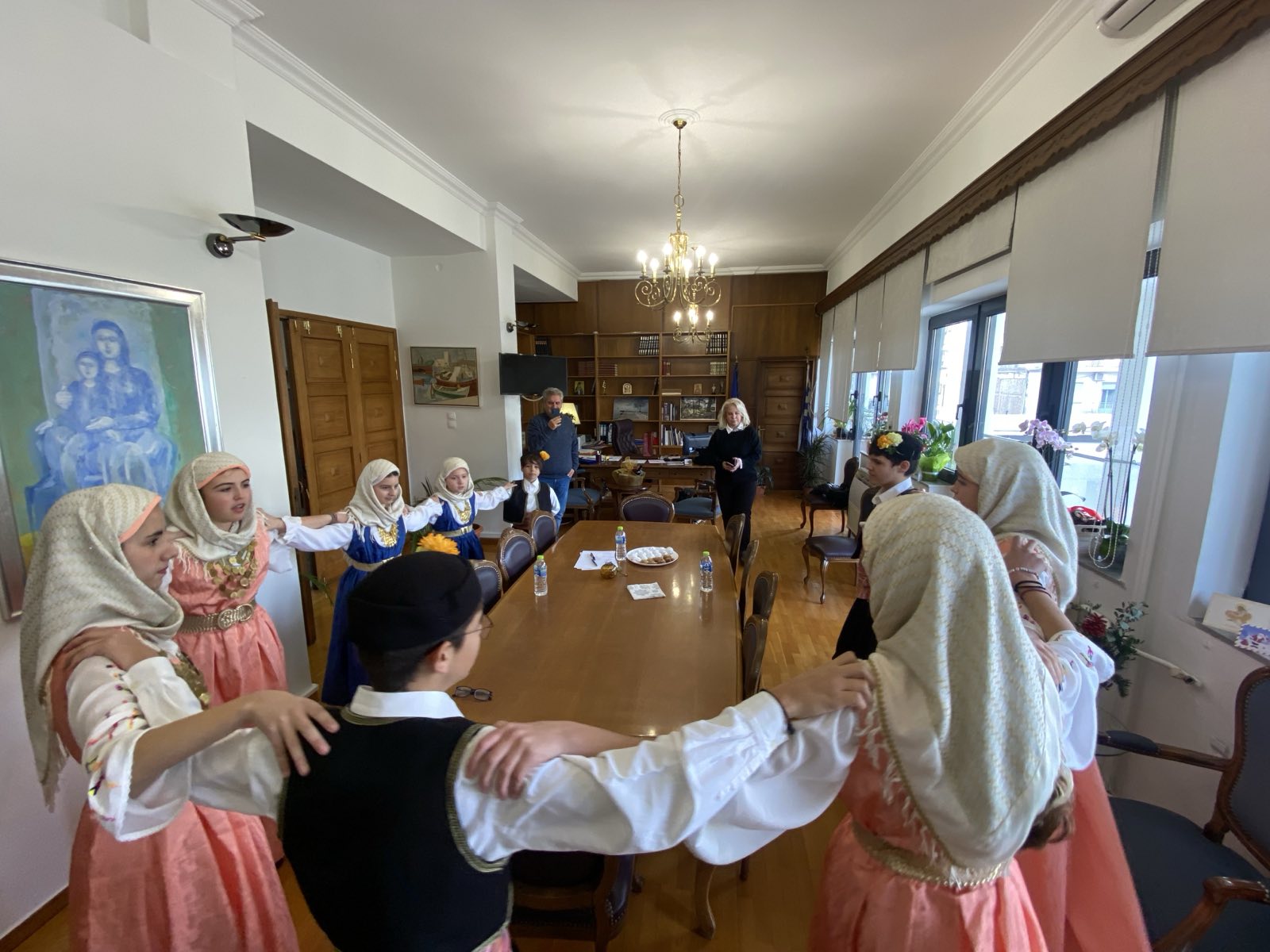 Η Αντιπεριφερειάρχης Π.Ε Μαγνησίας & Σποράδων κ. Άννα Μαρία Παπαδημητρίου δέχτηκε σήμερα ευχές στο γραφείο της, από τον Δήμαρχο Αλμυρού και τη νεοσύστατη Φιλαρμονική Ορχήστρα του Δήμου καθώς και από τον Χορευτικό Όμιλο Βόλου, παρουσία και του Αντιπεριφερειάρχη Ψηφιακής Διακυβέρνησης και Εξυπηρέτησης του Πολίτη Γιάννης Αναστασίου