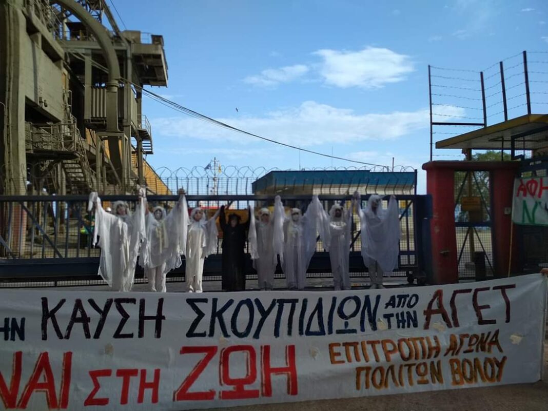 Εικονες στο λιμάνι της ΑΓΕΤ στο πλαίσιο της διαμαρτυρίας της Επιτροπής Πολιτών κατά της καύσης σκουπιδιών κατά την εκφόρτωση ενός από.η φορτίου RDF/SRF