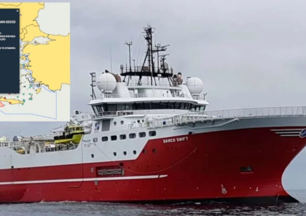 Εκδόθηκε η σχετική NAVTEX για τις σεισμικές έρευνες του πλοίου «Sanco Swift» σε Κρήτη και Πελοπόννησο που ανακοίνωσε χθες ο πρωθυπουργός Κυριάκος Μητσοτάκης κατά τη διάρκεια τηλεοπτικής του συνέντευξης στον ΑΝΤ1.