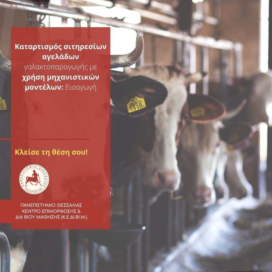 Το Κέντρο Επιμόρφωσης & Διά Βίου Μάθησης του Πανεπιστημίου Θεσσαλίας σας καλωσορίζει σε ένα ακόμα εκπαιδευτικό πρόγραμμα κατάρτισης με «Καταρτισμός σιτηρεσίων αγελάδων γαλακτοπαραγωγής με χρήση μηχανιστικών μοντέλων: Εισαγωγή» .