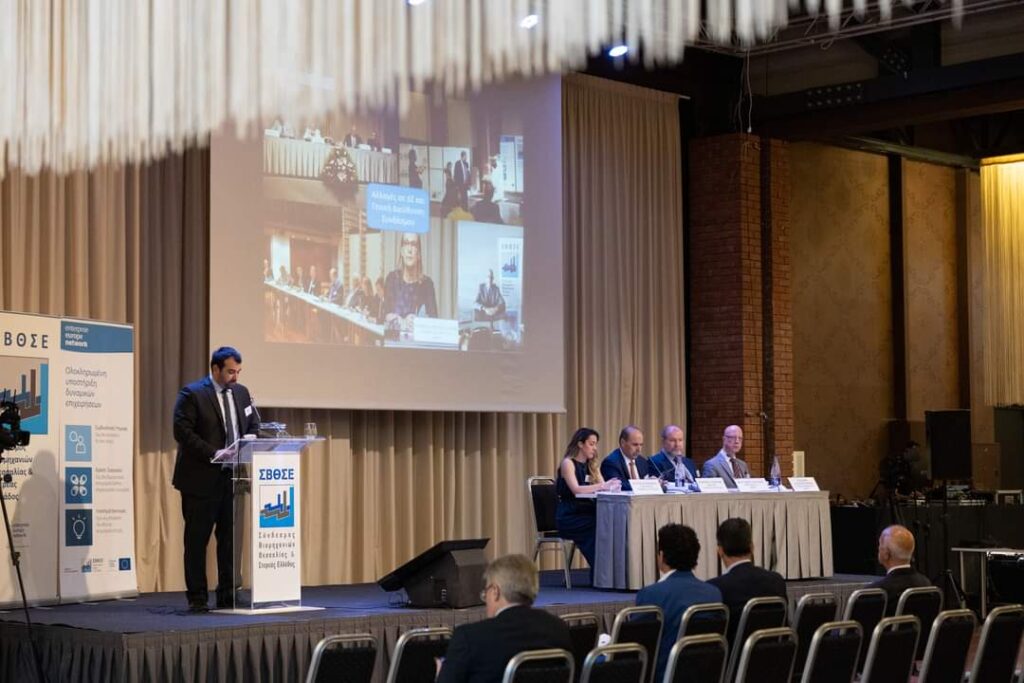 Λαμβάνοντας τον λόγο, ο κ. Μαργαρίτης Σχοινάς, Αντιπρόεδρος της Ευρωπαϊκής Επιτροπής αρμόδιος για την Προώθηση του Ευρωπαϊκού Τρόπου Ζωής, αφού ευχαρίστησε τον Σύνδεσμο Βιομηχανιών Θεσσαλίας & Στερεάς Ελλάδος για την τιμητική πρόσκληση και όλους τους συμμετέχοντες για την παρουσία τους, αναφέρθηκε στις πρωτοβουλίες της Ευρωπαϊκής Ένωσης για την προώθηση της ανταγωνιστικότητας της Ευρωπαϊκής οικονομίας και της περιφερειακής ανάπτυξης σε ένα περίπλοκο διεθνές οικονομικό και γεωπολιτικό περιβάλλον.