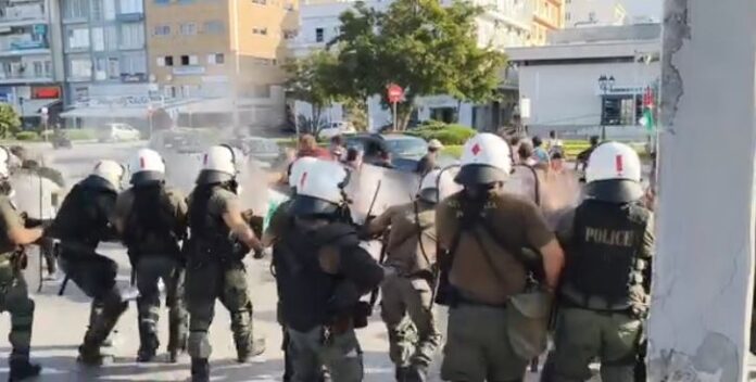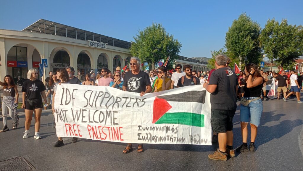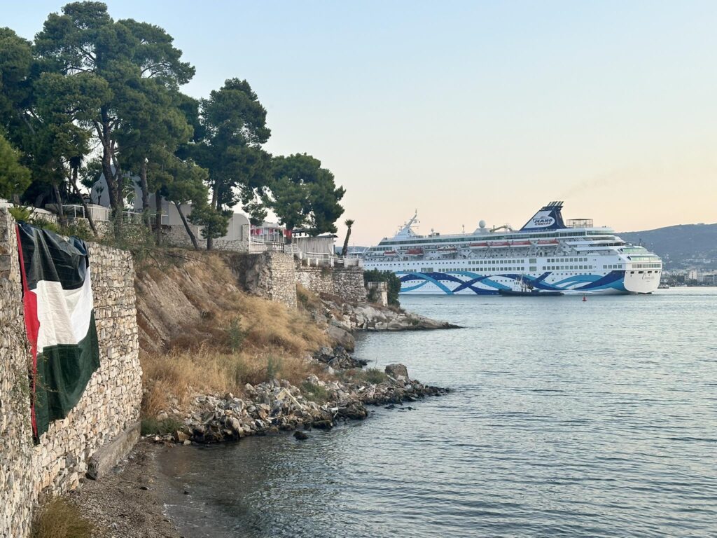 Μικρής έκτασης ένταση σημειώθηκε νωρίτερα στην είσοδο του λιμανιού με τα ΜΑΤ να ρίχνουν κρότου λάμψης για να απομακρυνθούν οι διαδηλωτές που διαμαρτύρονταν για την έλευση του Κρουαζιεροπλοίου με ισραηλινούς επιβάτες . Παράλληλα λεωφορεία με την ένδειξη “εκτός υπηρεσίας” μπήκαν στο λιμάνι από την είσοδο της Μπουρμπουλήθρας και παρέλαβαν εκατοντάδες ισραηλινούς τουρίστες που επισκέπτονται την Μακρινίτσα και τα Μετέωρα.