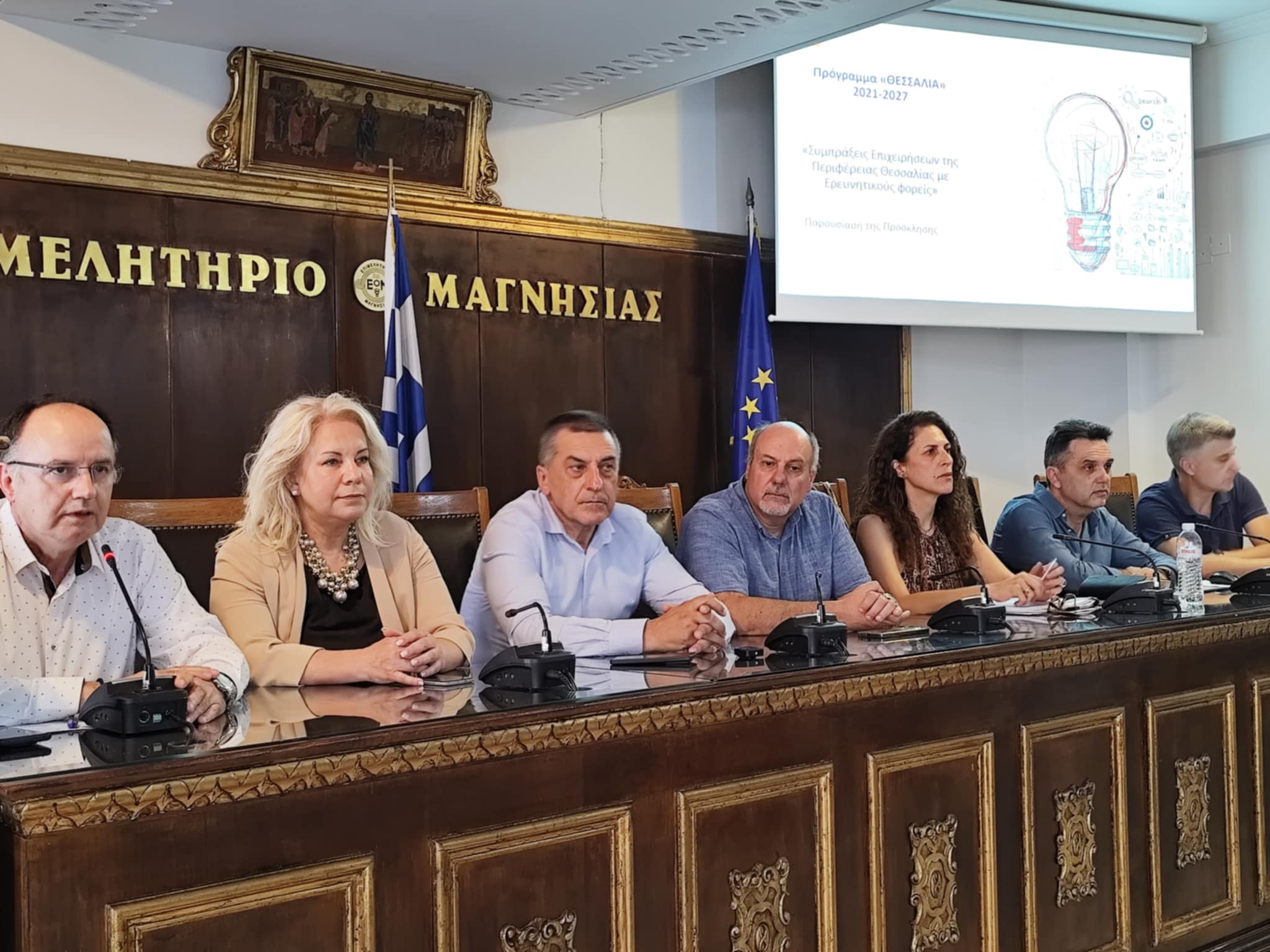 Σε μία ασφυκτικά γεμάτη αίθουσα πραγματοποιήθηκε το απόγευμα της Πέμπτης 19 Ιουνίου η δεύτερη κατά σειρά ενημερωτική εκδήλωση αναφορικά στην πρόσκληση «Συμπράξεις Επιχειρήσεων της Περιφέρειας Θεσσαλίας με Ερευνητικούς Φορείς» που πραγματοποιήθηκε στο Επιμελητήριο Μαγνησίας από την Περιφέρεια Θεσσαλίας, παρουσία του Γενικού Διευθυντή του ΣΒΘΣΕ Βασίλειου Κλειτσογιάννη, αλλά και του πρώην Πρύτανη του Π.Θ. Ζήση Μαμούρη.Τόσο ο κ. Λεωνίδας Δημήτριος, Καθηγητής του Τμήματος Βιοχημείας και Βιοτεχνολογίας, Πανεπιστημίου Θεσσαλίας και Πρόεδρος του Περιφερειακού συμβουλίου Καινοτομίας (ΠΣΕΚ), όσο και οι κ.κ. Νίκος Πάντος και Χριστίνα Πάκα Στελέχη ΔΙΑΠ και ο κ. Νίκος Γουγουλιάς, προϊστάμενος του τμήματος κινήτρων έδωσαν χρήσιμες πληροφορίες για τον τρόπο υποβολής των προτάσεων, με δεδομένο ότι αντίστοιχο Πρόγραμμα δεν έχει υπάρξει κατά το παρελθόν. Στην τοποθέτησή του ο Περιφερειάρχης Θεσσαλίας Δημήτρης Κουρέτας που συνοδεύονταν από την χωρική αντιπεριφερειάρχη Άννα Μαρία Παπαδημητρίου και τον Αντιπεριφερειάρχη Ψηφιακής Διακυβέρνησης και Εξυπηρέτησης Πολιτών Γιάννη Αναστασίου, υπογράμμισε ότι «τα προγράμματα επιχειρηματικότητας που εντάσσονται στο ΕΣΠΑ είναι χωρισμένα σε δύο σκέλη.