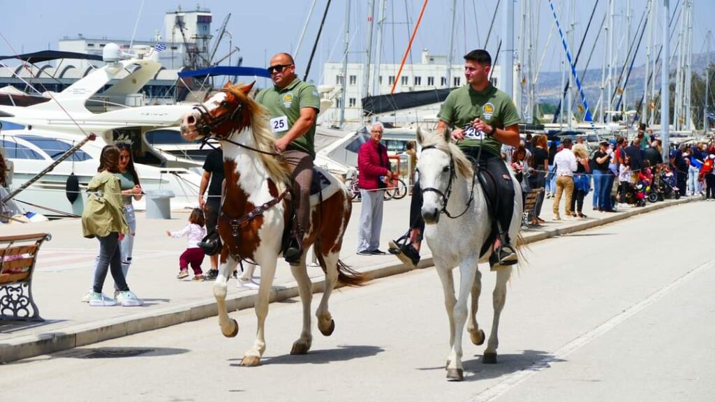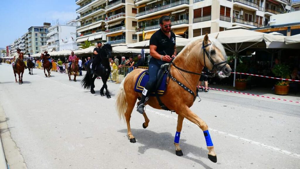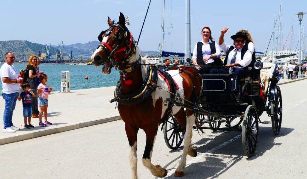 Με την παρέλαση αλόγων, αμαξών και ιππέων στην παραλία του Βόλου κορυφώθηκε σήμερα η 8η πανελλαδική ιππική συνάντηση με το θέαμα να περιλαμβάνει επιδείξεις ιππικής δεξιοτεχνίας μουσικές και χορευτικά.