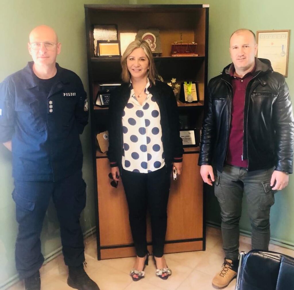 Στη συνέχεια, η Υφυπουργός Παιδείας επισκέφτηκε τον Αλμυρό και το εκεί Αστυνομικό Τμήμα, όπου πραγματοποίησε συνάντηση με τον Διοικητή, Αστυνόμο κ. Σκορδά, τον υποδιοικητή, υπαστυνόμο κ. Αρίδη και αστυνομικούς, τους οποίους και ευχαρίστησε για την αφοσίωση στο σπουδαίο και απαιτητικό λειτούργημά τους και ευχήθηκε σε όλους καλή δύναμη στην άσκηση των καθηκόντων τους για την ασφάλεια της τοπικής κοινωνίας. Με την ευκαιρία της επίσκεψής της στο Α. Τ. Αλμυρού, η κα Μακρή απόλαυσε μια βόλτα στην πόλη, συνομίλησε με επαγγελματίες, καταστηματάρχες και πολίτες, που την υποδέχτηκαν με εγκαρδιότητα και την τόνωσαν με τις ευχές τους για καλή επιτυχία στις εθνικές εκλογές.
