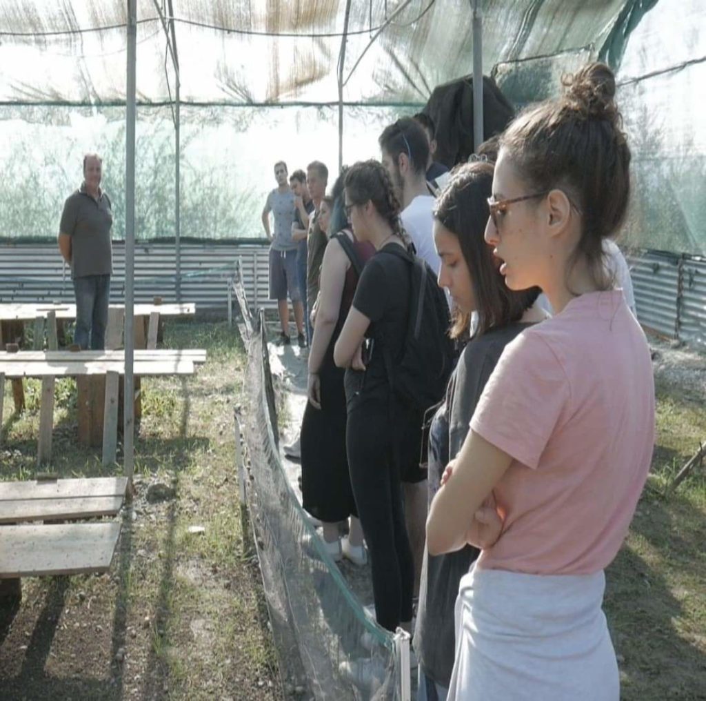 Στη συνέχεια επισκέφθηκαν την μονάδα εκτροφής σαλιγκαριών “Roi Pelee” στην Άλλη Μεριά Βόλου. Κατά την διάρκεια της επίσκεψης, οι φοιτητές είχαν την δυνατότητα να έρθουν σε επαφή με τις απαιτήσεις μίας λειτουργικής μονάδας εκτροφής σαλιγκαριών. Επιπλέον, όπως φάνηκε από τις ερωτήσεις τους, οι φοιτητές έδειξαν ιδιαίτερο ενδιαφέρον για τις διατροφή και την ευζωία στην εκτροφή αλλά και τους τρόπους διάθεσης των προϊόντων στην αγορά. Τέλος, συζήτησαν με τον εκτροφέα κ. Ι. Αγροκώστα για τα προβλήματα και τις προοπτικές του κλάδου της σαλιγκαροτροφίας. Η επιχείρηση με την επωνυμία «Roi Pelee» (ιδιοκτησίας Κ. Μελτζινίτη) παράγει νωπά σαλιγκάρια των ειδών Cornu aspersum aspersum (κρητικός κοχλιός, petis gris) και Cornu aspersum maximum (gros gris), που εκτρέφονται σε διχτυοκήπιο με φυτική βλάστηση και παροχή σιτηρεσίου (ημιεντατική εκτροφή – κλειστή) και ένα μεταποιημένο προϊόν (σαλιγκάρια σε άλμη σε γυάλινη συσκευασία). Οι μικροκλιματικές συνθήκες στην περιοχή εγκατάστασης του διχτυοκηπίου είναι ευνοϊκές για την συγκεκριμένη δραστηριότητα. Η επιχείρηση διαθέτει επιπλέον πλήρως εξοπλισμένο θάλαμο, για την διεξαγωγή των σταδίων της αναπαραγωγής των σαλιγκαριών και της χειμερίας νάρκης.