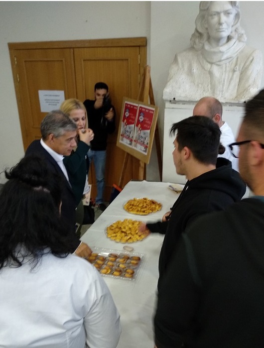 Μεταξύ των τυχερών που γεύτηκαν τις παρασκευές, ο περιφερειάρχης κος Αγοραστός και η αντιπεριφερειάρχης κα Κολυνδρινη που δεν παρέλειψαν να δώσουν τα συγχαρητήρια τους για την επιτυχημένη «γλυκιά» παρουσία των σπουδαστών.