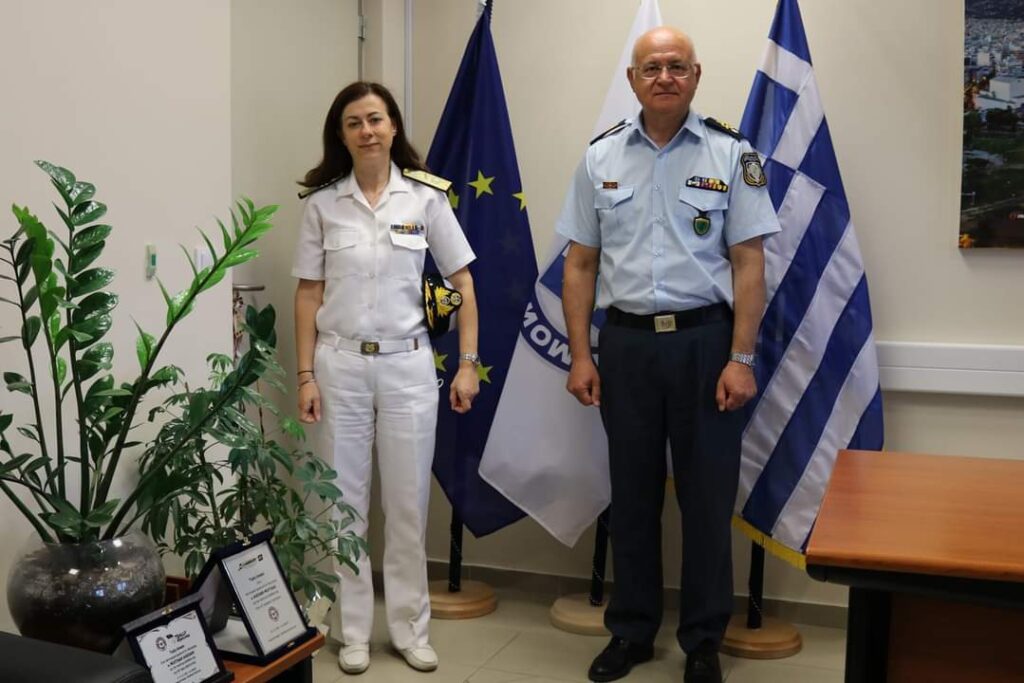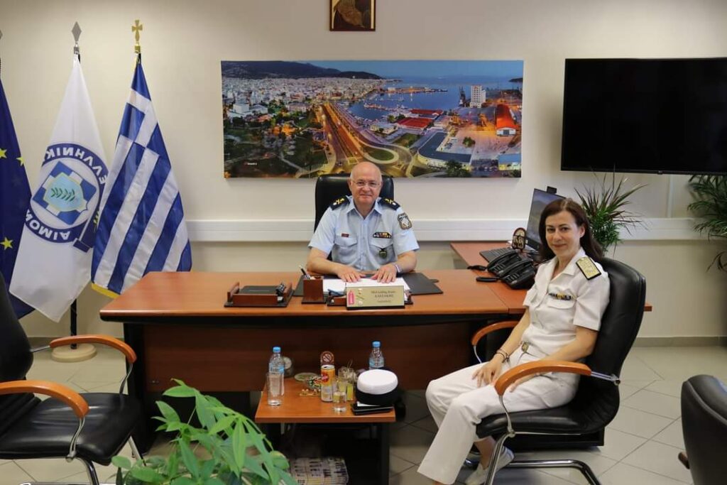 Εθιμοτυπική επίσκεψη πραγματοποίησε σήμερα στον Αστυνομικο Δ/ντη Μαγνησίας Μ.Αλεξάκη η νεα Διοικητής της 4ης Περιφερειακής Διοίκησης Λιμενικού Σώματος-Ελληνικής Ακτοφυλακής στο Βόλο, Αρχιπλοιαρχος Λ.Σ κα.Νικη ΔΑΝΔΟΥΛΑΚΗ.