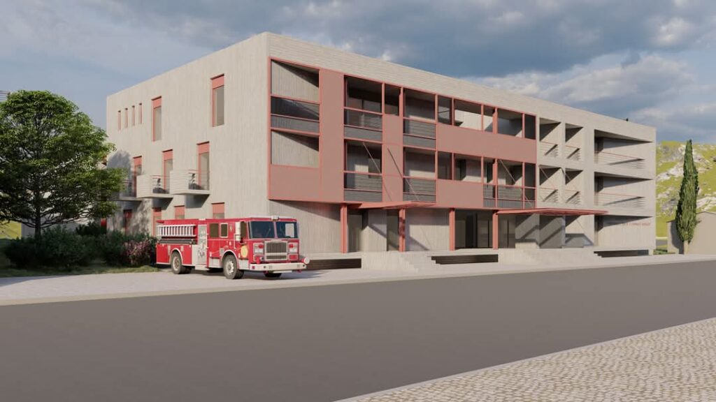 Ο σχεδιασμός ενός “σύγχρονου Πυροσβεστικού Σταθμού” σε οικόπεδο εμβαδού 3.091μ2 που παραχώρησε ο Δήμος Βόλου στη θέση Μαχαιρίτσα στην Ν. Ιωνία αντικαθιστώντας τις υπάρχουσες ανεπαρκείς εγκαταστάσεις στο κέντρο της πόλης του Βόλου καταλήγει σε ένα κτιριακό συγκρότημα δύο όγκων γραμμικού σχήματος με συνολικό εμβαδόν κτισμάτων 2.981μ2 εκ των οποίων 413μ2 αφορούν υπόγειους χώρους και τα υπόλοιπα κατανέμονται σε ένα αμαξοστάσιο με 5 ρεμίζες , χώρους διοίκησης, κοιτώνες, βοηθητικούς χώρους, χώρους εκπαίδευσης και ψυχαγωγίας, πύργο εκπαίδευσης .